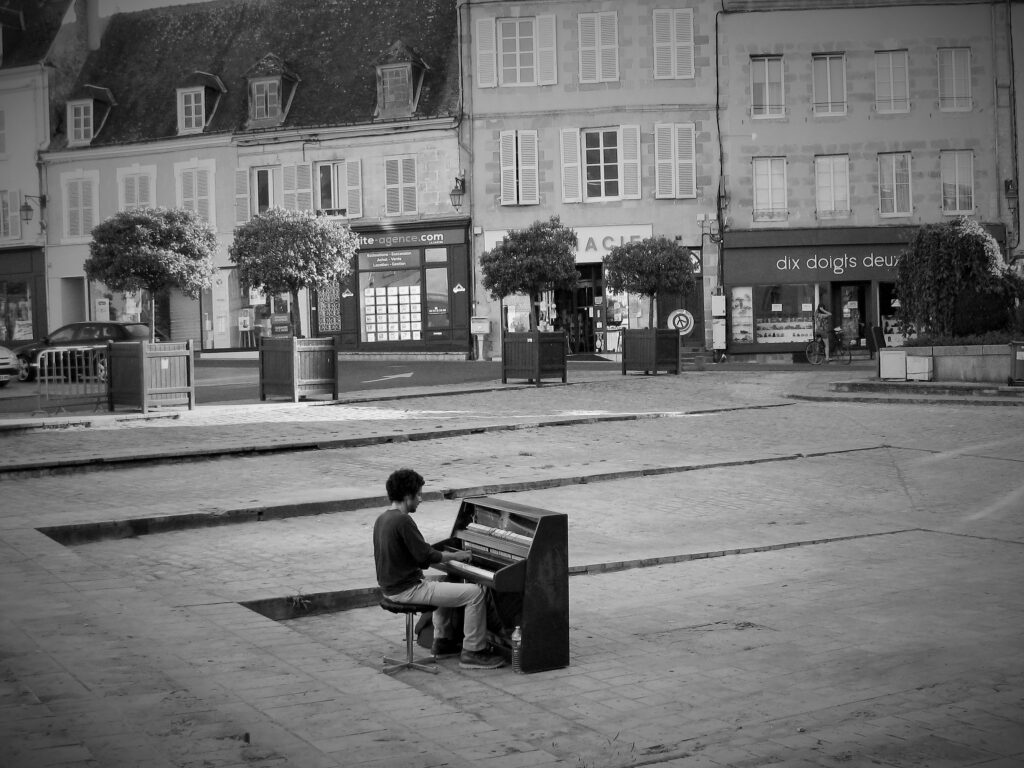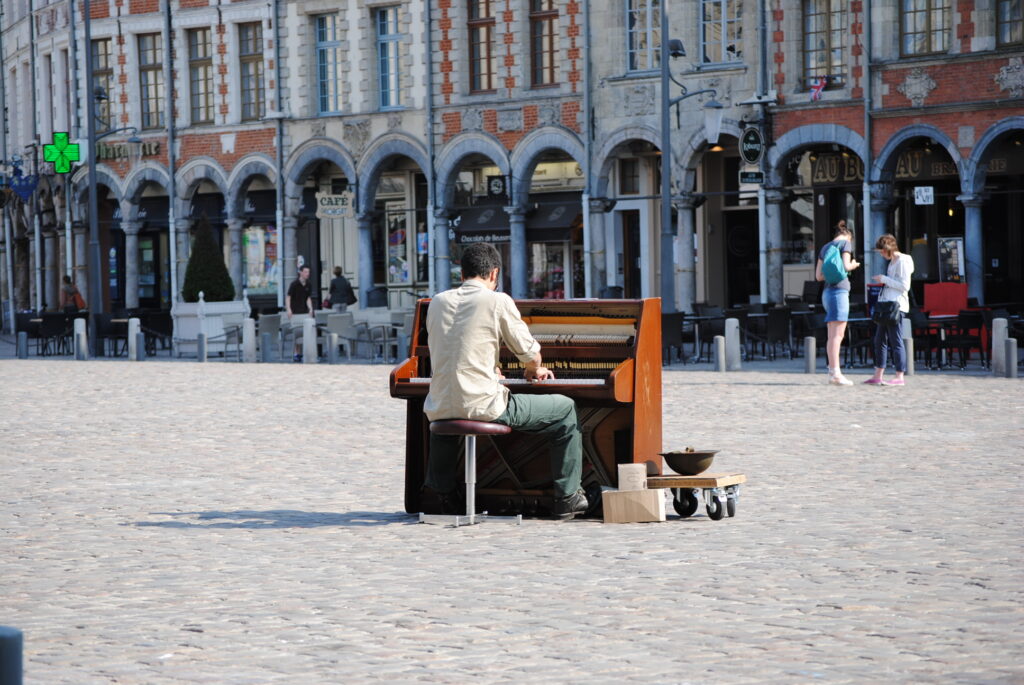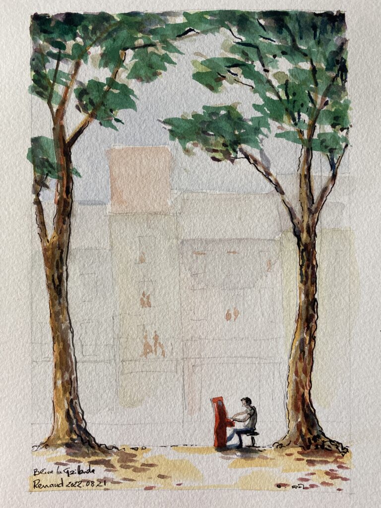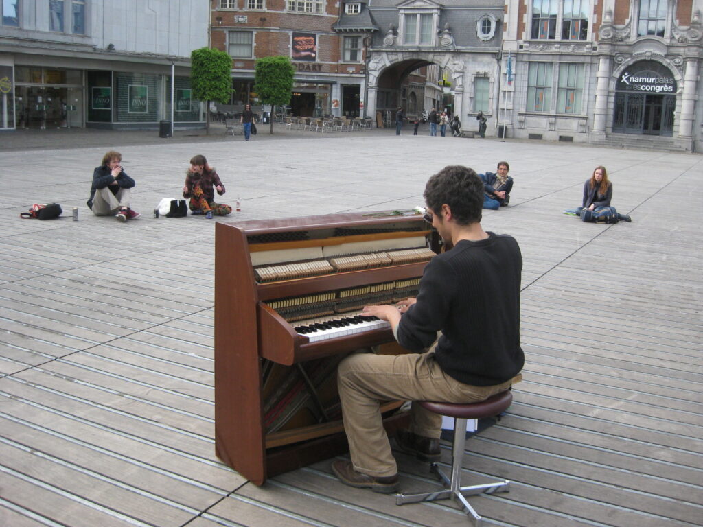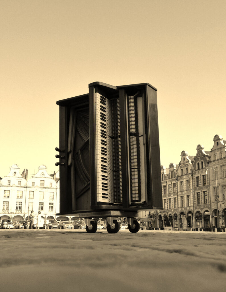Sans doute rêvée plus qu’imaginée, mais encouragée par l’apparition progressive de pianos dans les espaces publics couverts, comme les gares, l’idée de voyager avec un piano et de l’installer ici et là au gré de l’inspiration n’a pas été sans poser quelques problèmes d’organisation.