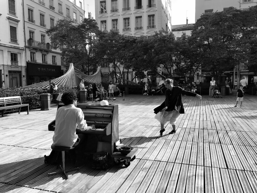 Un an plus tard, la danse est venu enrichir la musique et c’est à deux que s’est fait le voyage des Denteliers. Il a permis d’écrire et de roder un spectacle original mettant en scène une danseuse et un pianiste.